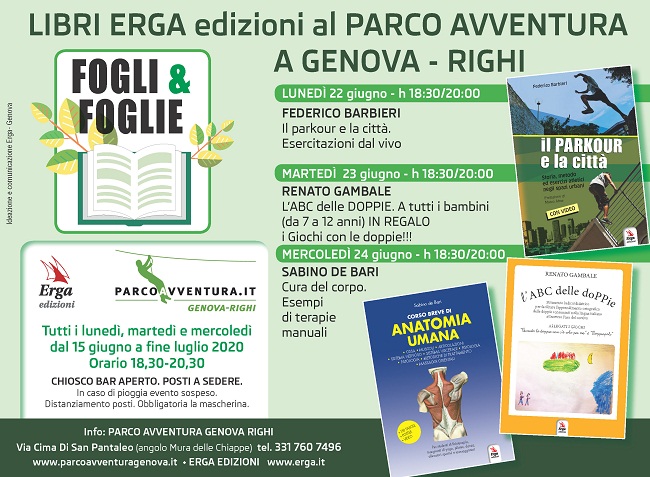 GENOVA -Lunedì 22 giugno dalle 18.30 alle 20 Federico Barbieri, classe 1995, illustra il suo manuale Il Parkour e la città con foto e video, con prefazione del prof. Marco Aime. La curiosa storia di questo sport in cui i giovani si riappropriano degli spazi urbani ostili e dimenticati, ricchi di ostacoli e di spazi frantumati, per renderli ambiente di gioco e competizione e tanti esercizi dal vivo per un Parkour in città e in sicurezza.