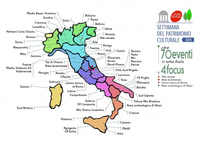 Le scelte politiche del MiBAC (PON Cultura e Sviluppo), con i notevoli investimenti al Sud, hanno tentato di riequilibrare il sistema senza però ottenere un significativo risultato, almeno per ora. Oltre al tema delle aree interne e della gestione dal basso, la Settimana del Patrimonio Culturale di Italia Nostra vuole ricordare le altre questioni all’ordine del giorno: le varie aree terremotate d’Italia e il rischio per i beni culturali ivi presenti; la valorizzazione del patrimonio diffuso; lo stato dei siti archeologici nel Sud del Paese e i centri storici delle città d’arte.