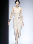 I volumi sono ora morbidi, ora strutturati, non discostandosi mai dalla volontà di elevare il profilo femminile: i punti vita sono ancora fortemente esaltati, la visione della linea vuole essere cristallina. Da qui maxi cinte Obi e nastri impunturati annodati accentuano la figura stringendo il punto vita, raffinati bracciali dorati a premiare i polsi.