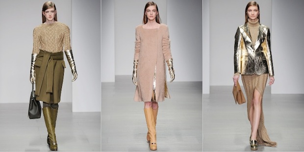 La tavolozza dei colori è un omaggio alla storia della casa di moda: cammello, sangue di bue, nero, marrone scuro e verde oliva, anche se accenti metallici hanno contribuito ad aggiungere un tocco fresco e moderno.
