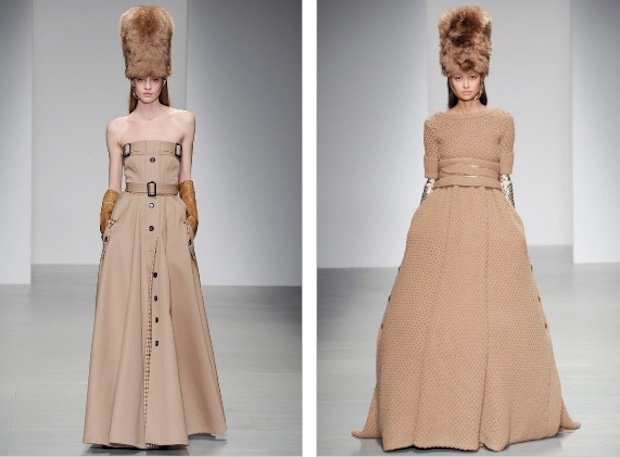 I tagli sartoriali ed eleganti ricordano gli anni '70, mentre i cappotti militari aggiungono un tocco androgino. Gonne presenti sulla maggior parte delle silhouette di solito colpiscono il ginocchio.