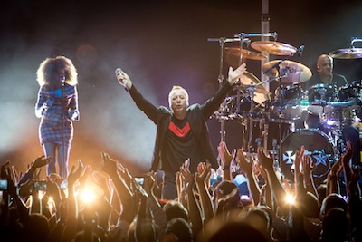 Sul palco risuonano le note di The Jean Genie di David Bowie con Jim Kerr che si diverte a ballare e salutare la folla.