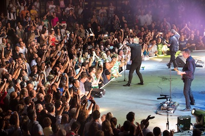La gente si accalca così sotto il palco ed il concerto si infiamma: dopo Let the day begin, cover dei The Call, parte Someone Somewhere In Summertime ed ovviamente l’atmosfera si scalda. “Siete fantastici!”, Jim Kerr si diverte sempre più e See the Lights fa da “apripista” all’attesissima Don’t You (Forget About Me): il carismatico leader lascia cantare il pubblico, poi chiede silenzio fino all’immancabile esplosione per il coro finale, infine saluta dando la buonanotte.