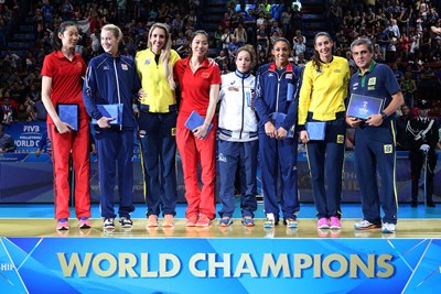 ITALIA - Paradossale è il fatto che l'Italia, sconfitta nella finale di consolazione dal Brasile, abbia dovuto guardare pochi minuti dopo una finale disputata da due squadre precedentemente battute dalla stessa nel corso del torneo. Forte il rammarico per l'occasione persa di bissare il successo di dodici anni prima in Germania, considerando le enormi potenzialità di questa squadra trascinata da un mix di freschezza ed esperienza. Le lacrime al termine della semifinale con la Cina testimoniano lo sconforto di queste ragazze e gli applausi dei didicimila del Mediolanum Forum di Assago ne ripagano gli sforzi per un torneo giocato alla grande dalle azzurre.