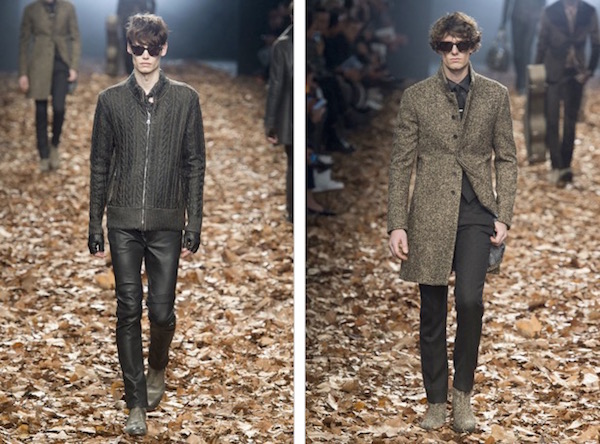 Cappotti non lunghi sono rivisti in versione rock attraverso pellami color carbone e richiamano l'eleganza più classica in cashmere e lana nelle tinte cammello e beige. Motorbike jacket completano l'outwear esaltato da cinture che segnano la vita di cappotti e capispalla di lana dalle tinte grigie. La maglieria rifinisce l'immagine del dandy rock a spasso per New York: dolcevita per affinare la silhouette così come impeccabili maglie di cashmere e lana spalmate sulla superficie pur mantenendo le proprie caratteristiche di morbidezza e leggerezza.