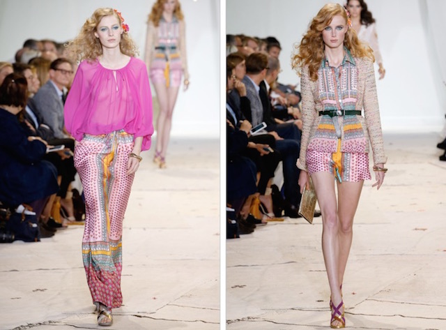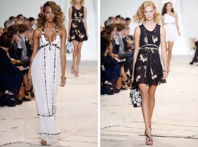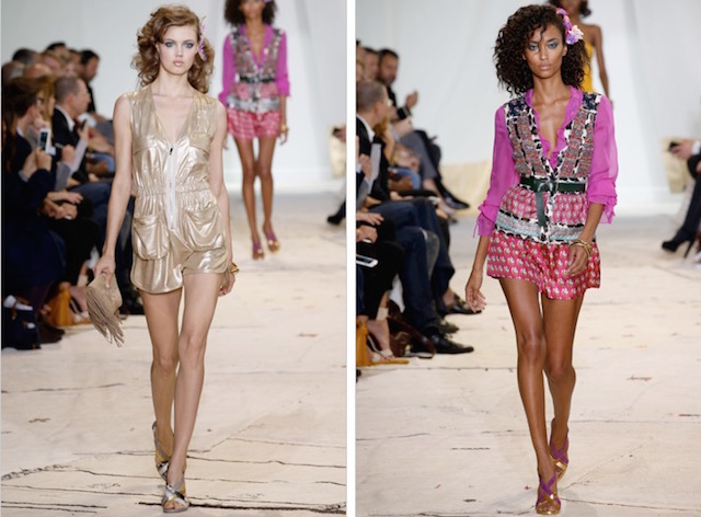 La collezione si concentra sugli abiti dalle stampe fiorate e dalla silhouette sensuale, farfalle dorate in volo spiccano sul tulle, fantasie zen su abiti da cocktail e sciarpe, frange colorate sugli orli e le borse.