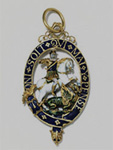 IL PATRONO, SEGNI DI DISTINZIONE E CERIMONIALI - Il Patrono dell’Ordine della Giarrettiera è San Giorgio, ed il giorno 23 aprile di ogni anno, si procede al c.d. ringraziamento che ha luogo presso il Castello di Windsor. Per la cerimonia solenne, i cavalieri indossano la “divisa” dell’ordine che è dotata di un mantello di colore Blu nautico di velluto (originariamente era di lana e di colore viola), su cui vi è cucita la Croce di San Giorgio sulla spalla sinistra. Ulteriore accessorio abbinato è il cappello, anch’esso di velluto ed arricchito da piume bianche. Gli insigniti portano appeso un collare formato da nodi d’oro che si vanno ad alternare a medaglioni smaltati. La medaglia, appesa al centro riporta San Giorgio a bordo di un cavallo che uccide un drago, calpestandolo. Altro ed ultimo accessorio è la c.d. Giarrettiera inserita nel polpaccio sinistro dei Cavalieri ed una fascia di velluto con riportato il motto “Honni soit qui mal y pense”.