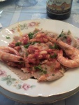 PRIMO: Ravioli di funghi con sugo di scampetti.