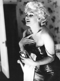 Due gocce di Chanel No. 5”. La sua battuta poi venne utilizzata sulla locandina pubblicitaria del profumo nel 1955, con una foto scattata a Marilyn da Ed Feingersh. Testimonial d’eccezione lo eleva a simbolo della sensualità.