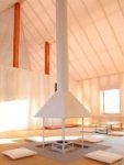 Il benessere termo-igrometrico è garantito non solo dallo spessore dell’isolamento, ma anche dai moti convettivi dell’aria che si innestano tra le due membrane. Il riscaldamento dell’abitazione è assicurato dalla combinazione di diversi sistemi: il pavimento radiante, i termosifoni e il camino posto al centro della casa che permette il funzionamento degli altri due diversi impianti di riscaldamento.