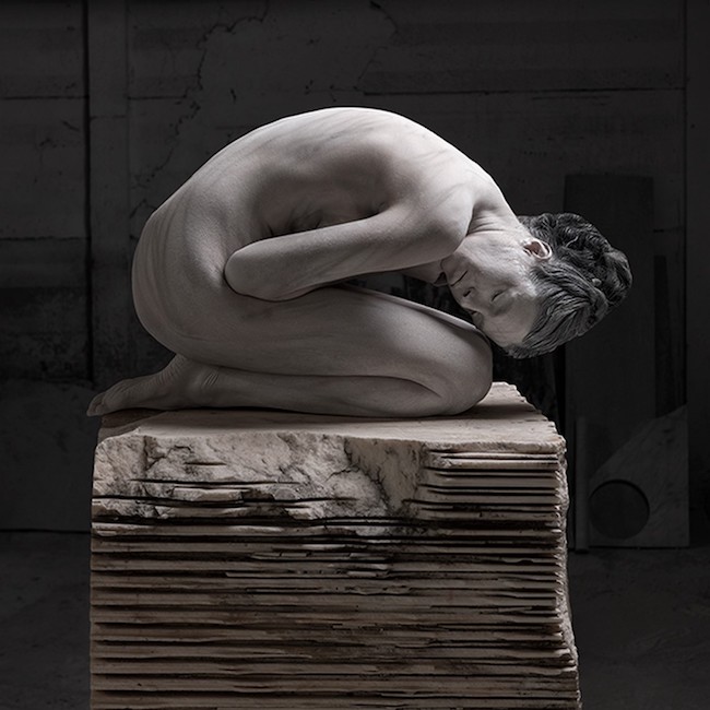 Il progetto “Renaissance”, che dà il titolo all’esposizione, si compone di 15 fotografie inedite a stampa giclée su carta baritata montata su dibond. Ideato dall’artista nel 2020, il lavoro è stato portato a termine nel 2022 negli spazi della Cooperativa scultori di Carrara. Attraverso una sequenza di immagini, una modella/attrice disegna e scolpisce il proprio corpo in un blocco di marmo fino ad amalgamarsi essa stessa con la materia, in una moltitudine di raffigurazioni legate all’antico femmineo e orientate al divenire.