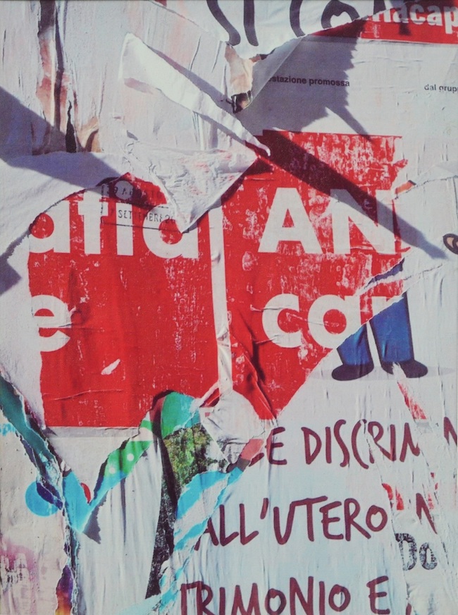 La serie dedicata alla contemporaneità, quella in cui Sesti si avvicina alla Pop Art di Mimmo Rotella pur oltrepassandola e personalizzandola con la sua sovrapposizione degli stralci di manifesti alla fotografia su tela che contamina poi con interventi cromatici volontari, è invece un suo sguardo sul consumismo contemporaneo, quello in cui l’oggi è già obsoleto, quello in cui tutto ciò che vale dura il tempo di un attimo perché subito dopo averlo ottenuto arriva qualcosa che sembra valere di più.