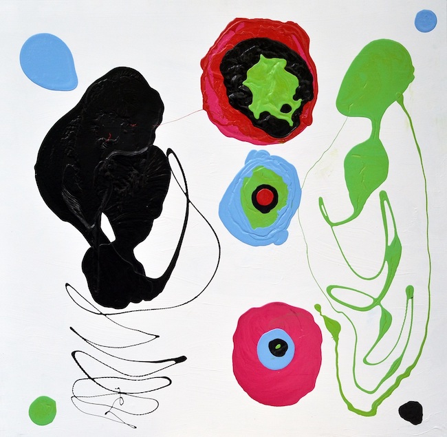 verso l’essenzialità di un messaggio che non ha bisogno di molti dettagli per raggiungere in modo incisivo e chiaro l’osservatore delle opere. Il suo stile personale e riconoscibile si pone come sintesi tra il Suprematismo Russo di Malevič per l’utilizzo della base bianca che è fondamentale a dare risalto al messaggio che di dipinto in dipinto desidera comunicare spogliandolo della pura estetica della figurazione, e il Surrealismo Astratto e assolutamente unico di Joan Mirò, per l’uso di forme e linee circolari che sottolineano la possibilità, spesso necessità, di arrotondare e ammorbidire gli spigoli e le rigidità – che siano caratteriali o della realtà in cui si sta vivendo poco importa -, la cui modificazione può cambiare completamente il punto di vista.