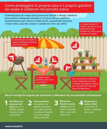 L’arrivo dell’estate coincide però anche con la comparsa di vespe, api e calabroni, infestanti tipici di questo periodo dell’anno, che proliferano e trovano il loro habitat ideale proprio all’aria aperta e le cui punture – a causa del pericoloso pungiglione – possono rivelarsi particolarmente sgradevoli e fastidiose.